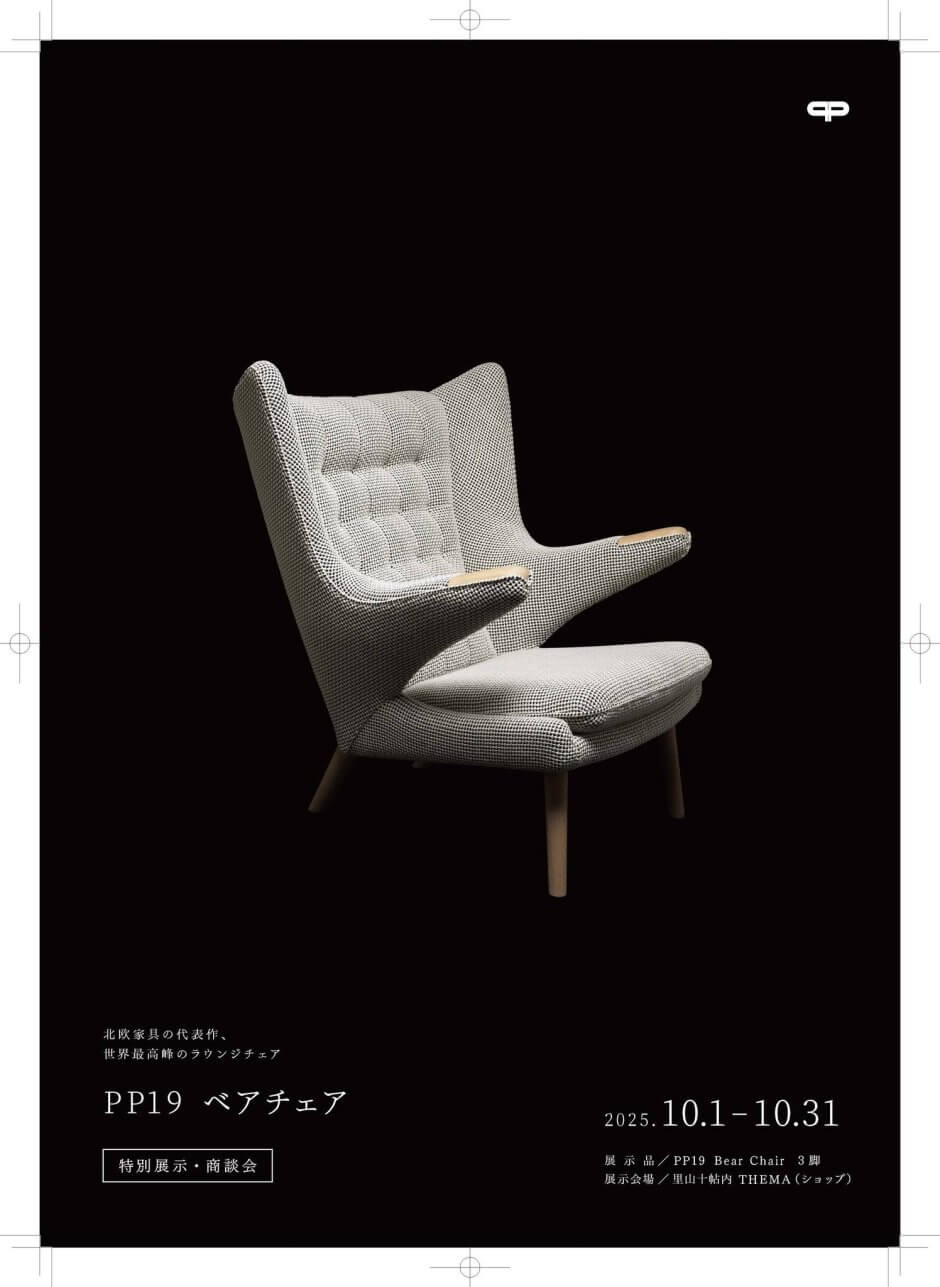 1951年、デンマークを代表するデザイナーであるハンス J. ウェグナーにより発表された「pp19」は、通称「ベアチェア」と呼ばれ、大きなクマが両手で座る人を包み込むようなユニークなフォルムが特徴的です。世界最高峰の家具工房、ppモブラーで製作されています。1953年に創業した同社は、ハンス J. ウェグナーとの長きに渡るパートナーシップにより、「ベアチェア」をはじめ、「ザ・チェア」「サークルチェア」など、歴史に残る名作を数々生み出してきました。なかでもこの「ベアチェア」は、現行の椅子の中でも最高峰の一脚とされています。その造形を高い技術で具現化するのが、 ppモブラーの職人たち。卓越した技術と手間を惜しまぬ手仕事で、1点ずつ丁寧に仕上げています。職人の技と稀有な造形美が、「ベアチェア」だけの特別な座り心地を実現しているのです。